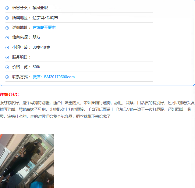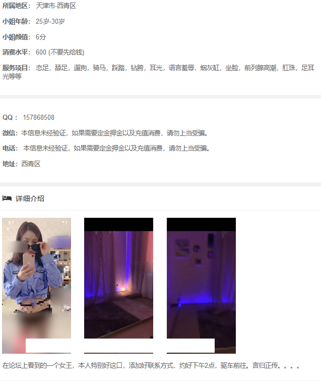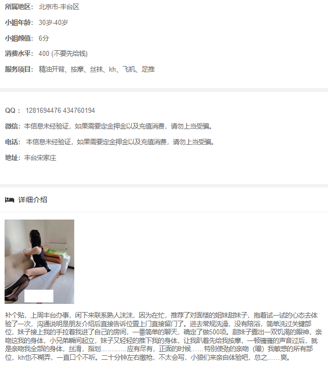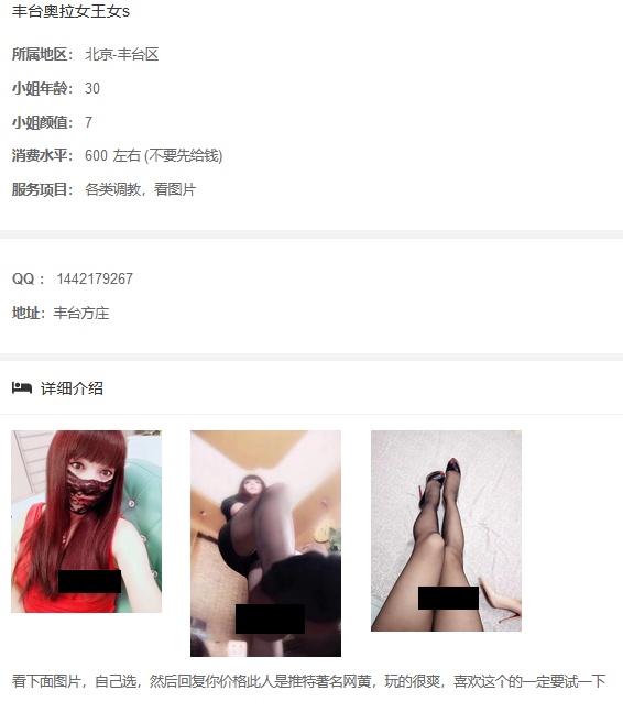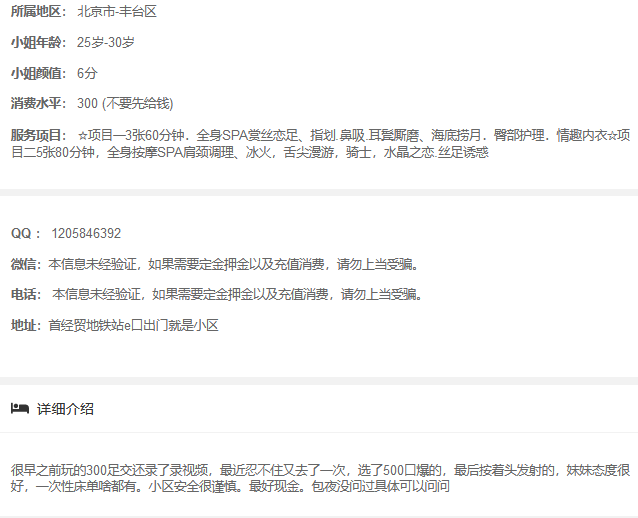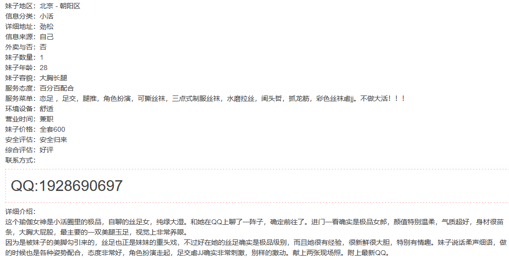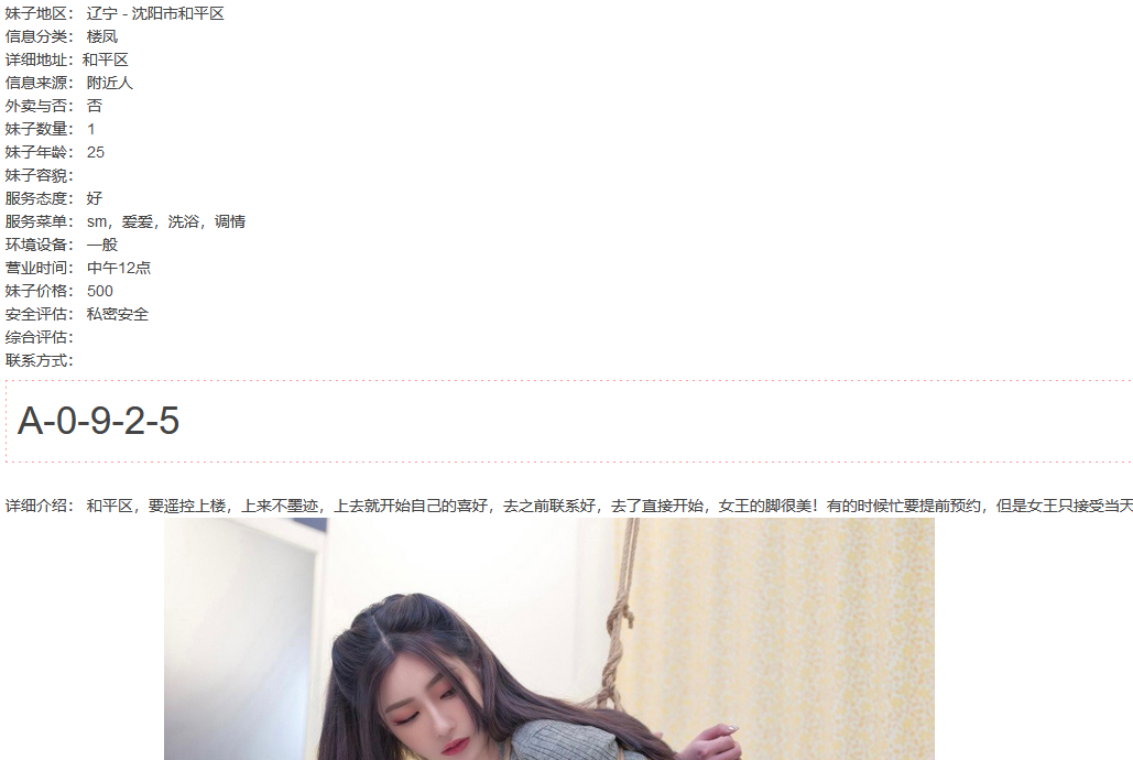 包含:妹纸联系方式,真人照片,地址,服务价格,联络攻略,介绍说明